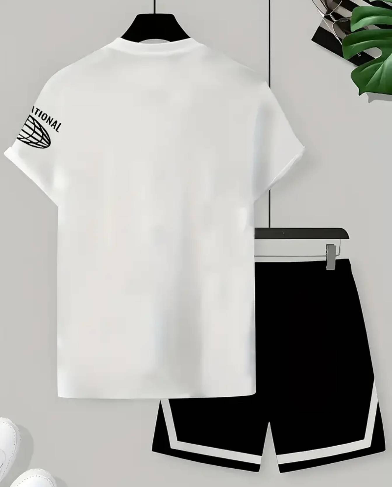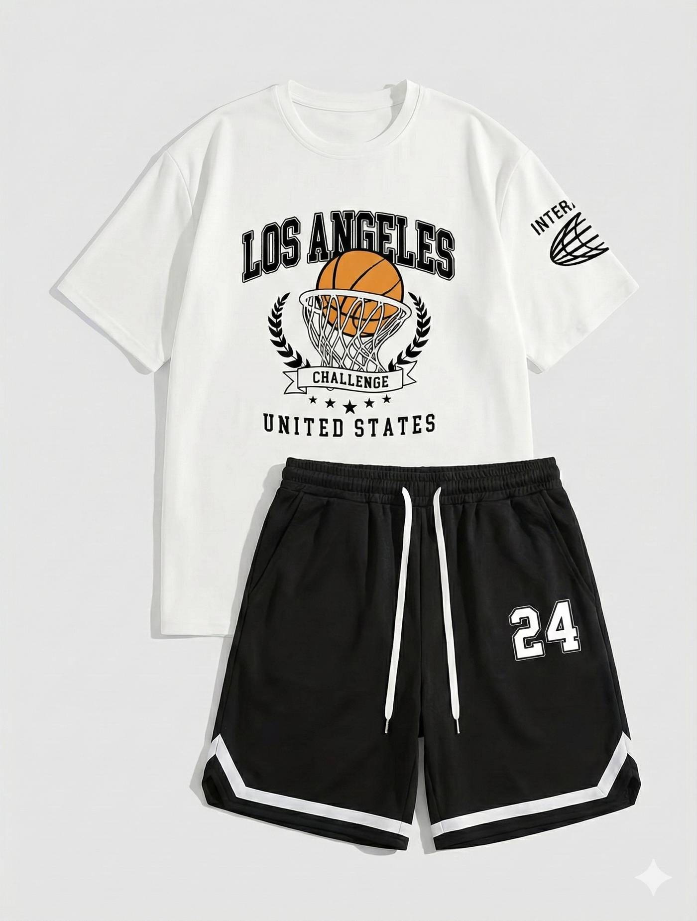 2pcs Set T-Shirt and Shorts | Los Angeles Letter Print, Basketball Training Outfit, 3D Print Technology, Upgraded Fabric, Comfortable and Breathable, Ideal for Outdoor Sports and Fitness