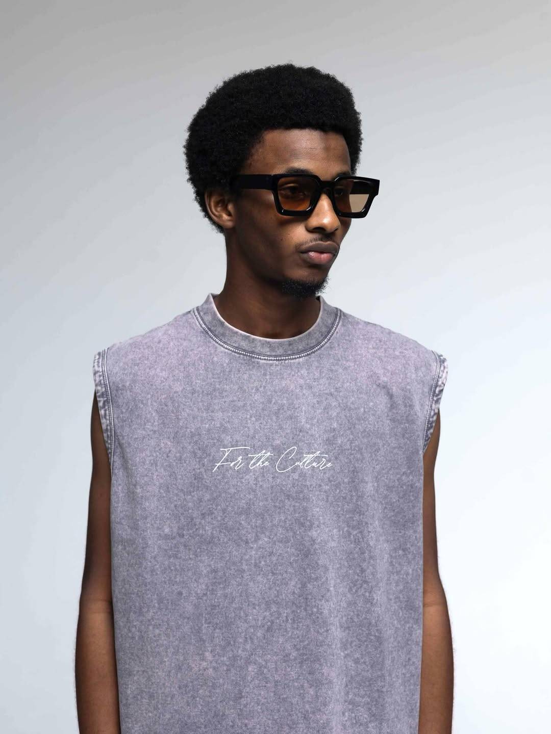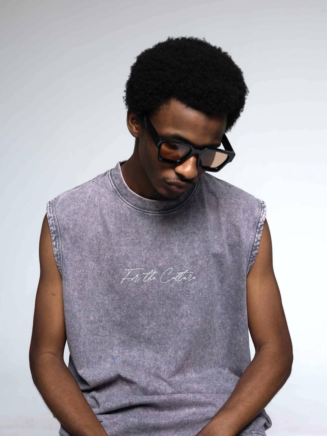 FOR THE CULTURE Acid wash sleeveless teeAvailable in Black and Grey