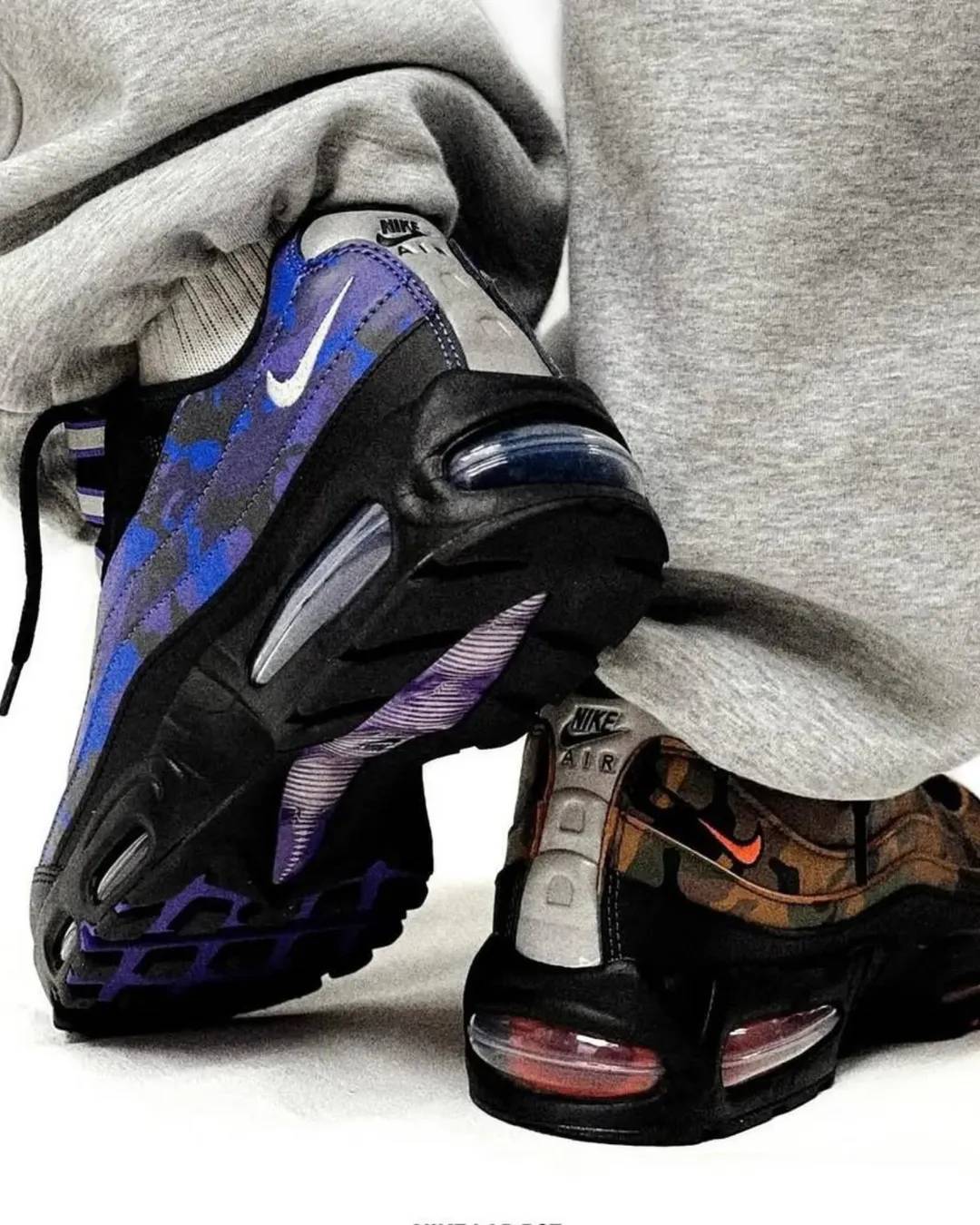 This exclusive Air Max 95 collection drops two disruptive takes on a '90s icon. Choose your mission: the "Stealth" (Earth-tone camo with safety orange pops) or the "Storm" (black and purple camo). Both feature the iconic layered uppers and visible Air cushioning for street-ready dominance.