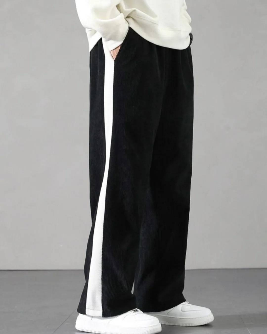 This is our new essential lineup of custom joggers, designed for that clean, relaxed, straight-leg silhouette that's in high demand. The defining feature across the collection is the bold, contrast side stripe.