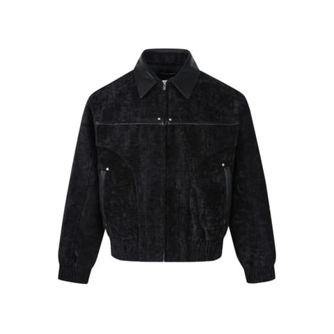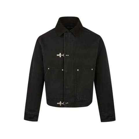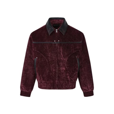 Redefine nocturnal style with this capsule. The collection contrasts rich, tactile luxury with stark, functional hardware. It’s a series of statement jackets, from embossed velvet bombers with western details to minimalist canvas workwear secured by bold metal clasps. This is outerwear as the main event.
